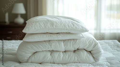 Crisp white bedding on a bed, representing relaxation and peaceful sleep
