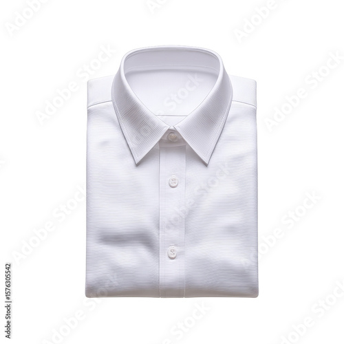 Crisp White Dress Shirt with Classic Collar, Folded Neatly on a Clean Surface, Perfect for Formal or Business Attire