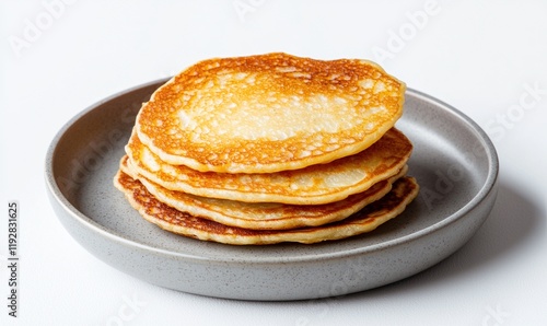 Crispy and soft Draniki Belarusian potato pancakes served with sour cream on a smooth gray plate