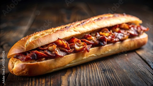 Crispy Bacon Sub Sandwich on Rustic Wooden Table