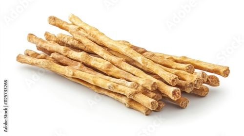 crispy breadsticks stacked on a white background ideal for culinary presentations or snack advertisements