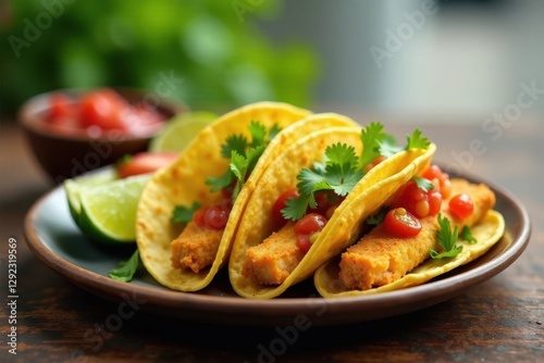 Crispy fish tacos, lime, salsa, picturesque setting, instafood, crispy