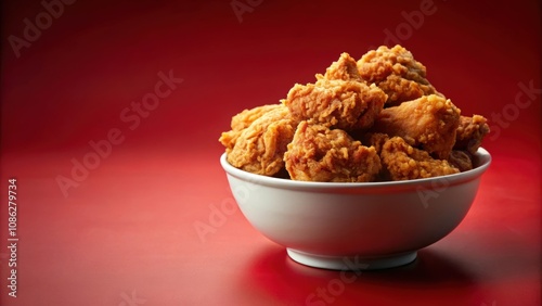 Crispy fried chicken in a bowl on red background, fried chicken, crispy, kentucky, bowl, red, background, delicious