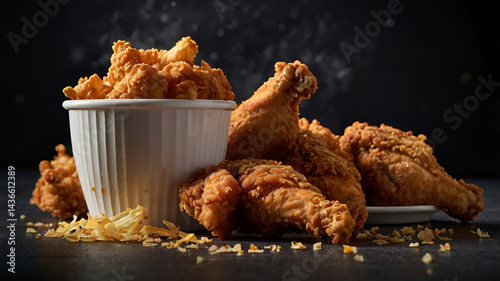 Crispy Fried Chicken Pieces in a White Bowl on Dark Background