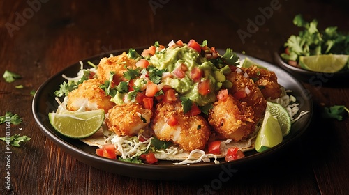 Crispy Fried Shrimp Topped with Guacamole and Pico de Gallo