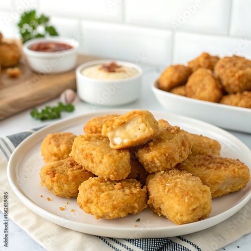 Crispy golden chicken nuggets with dipping sauces fried chicken