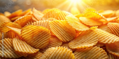 Crispy golden chips with ribbed texture and sunlight background, Golden, chips, ribbed, texture, seasoned, sunlight, crispy
