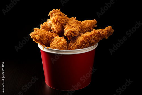 Crispy golden fried chicken pieces overflowing from red bucket, gatherings and celebrations advertisement concept