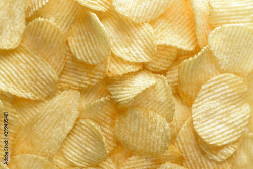 Crispy potato chips snack texture background