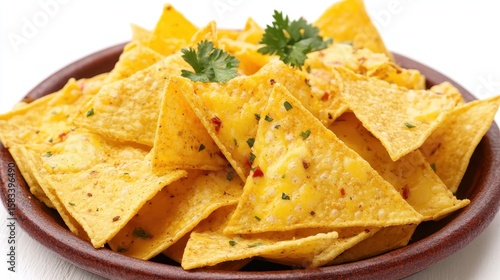 Crispy Tortilla Chips with Fresh Herbs on a Wooden Plate