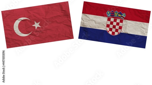 Croatia and Turkey Flags Together Paper Texture Effect Illustration