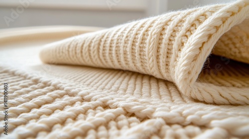 Crochet fabric in soft ivory tones with detailed loops and handcrafted texture