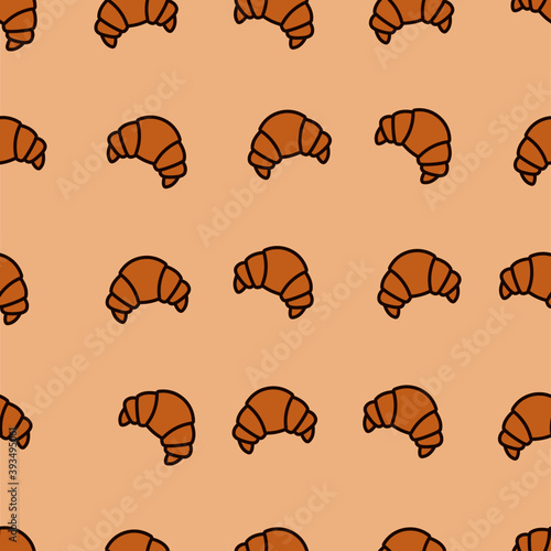 Croissant seamless pattern on brown background for bakery, cafe, loaf store, bread house, coffee shop, food market. packaging design wrapping paper and background design
