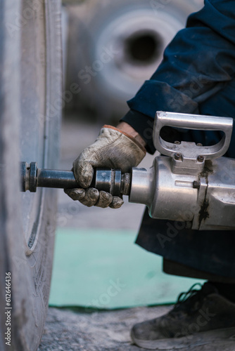 Crop mechanic attaching wheel to car