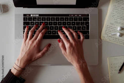 Crop publicist typing on laptop keyboard