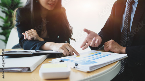 Cropped shot of business corporate people working discussing financial data in modern office.