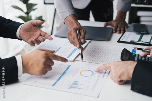 Cropped shot of business people having a discussion about the investment plan together while using graph and document for the project.