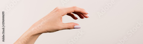 cropped view of female hand isolated on grey,