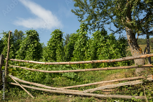 crops growing behind fences in the countryside village of Elmalı in Bursa, Turkey