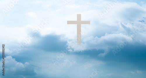 Cross Christian God Religion on Sky Background, Jesus Church Worship Pray Catholic Grace Christ, Symbols Christ Love Holy Spiritual Hope Peach Victory Spirit Mditation Catholicism Crucifix Trush.