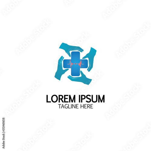 Cross Medical Logo With Hand Care. Medical Secure Logo Template Design Vector