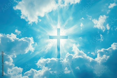 Cross of Jesus Christ in the sky with clouds. Christian easter. Conceptual religious symbol. with generative ai