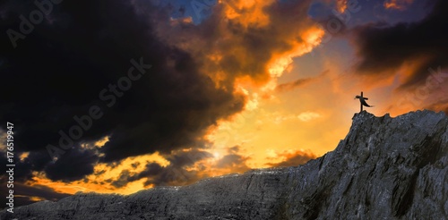 Cross religion symbol shape over sunset sky