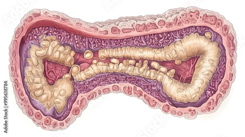 Cross Sectional Diagram of Human Intestine Showing Water Soluble Vitamin Absorption