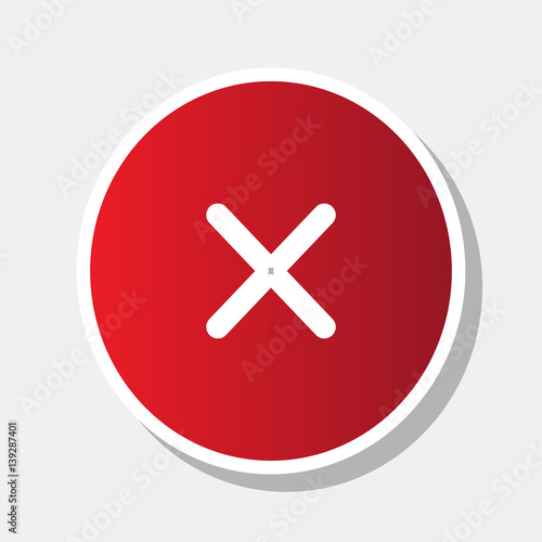 Cross sign illustration. Vector. New year reddish icon with outside stroke and gray shadow on light gray background.