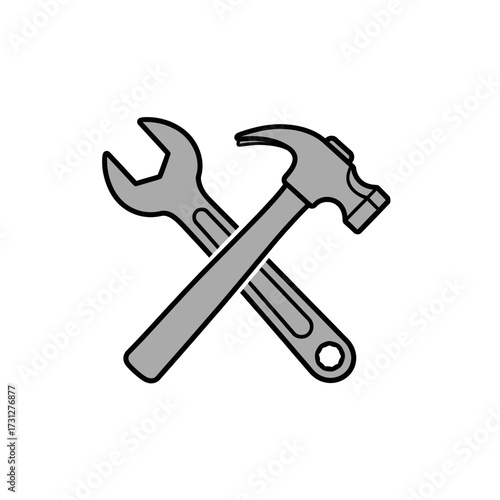 Crossed Hammer and Wrench Icon, Gray Tools Illustration