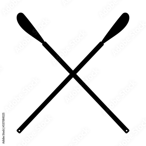 Crossed oars in lineart. Canoe paddles. Vector illustration isolated on white background.