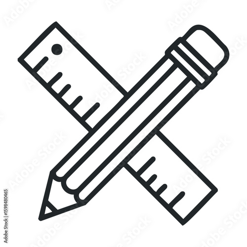 Crossed pencil and ruler icon symbolizing design and precision. Vector illustration