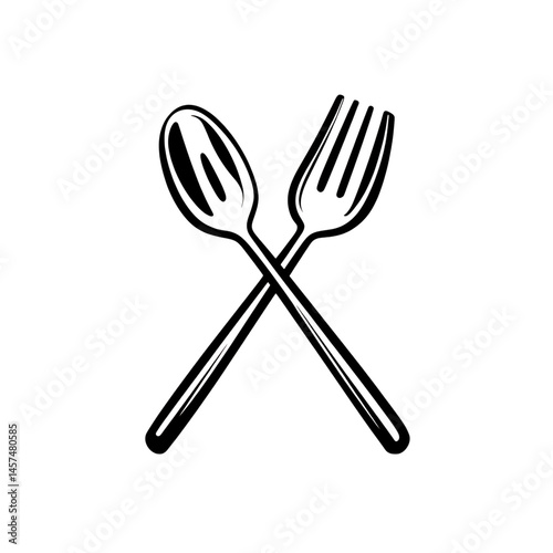 Crossed Spoon and Fork Icon, Minimal Flat Style, Clean Black Outline
