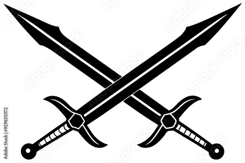 Crossed Sword Vector Silhouette, two crossed swords, vector illustration