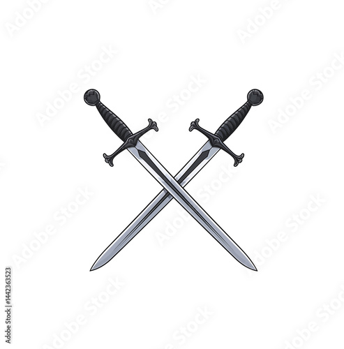 Crossed swords vector illustration isolated on white.