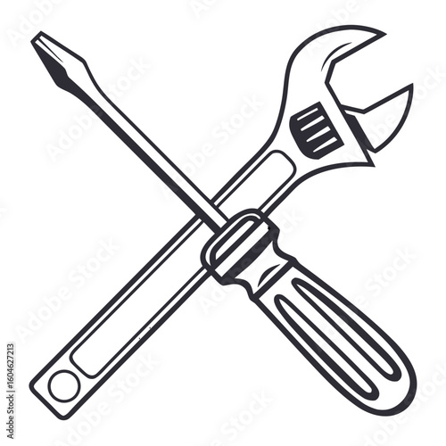 Crossed wrench and screwdriver illustration symbolizing repair and construction