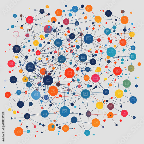 Cross-network analysis colorful abstract design with circles and dots showcasing data visualization technology connectivity patterns and modern graphic design principles for marketing purposes