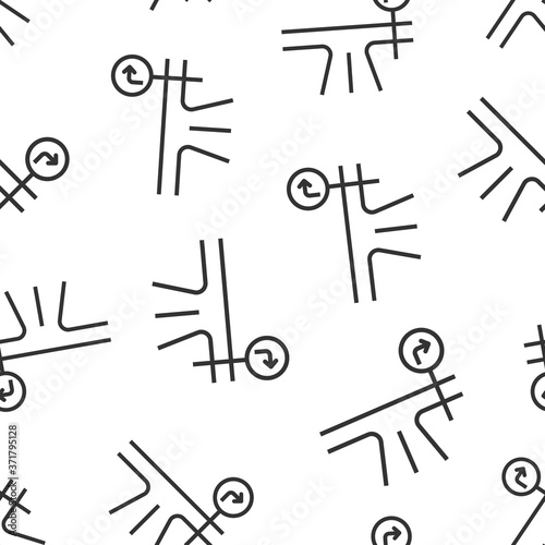 Crossroad icon in flat style. Road direction navigation vector illustration on white isolated background. Locate pin position seamless pattern business concept.