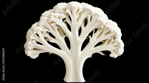 Cross-section of cauliflower head against black background, revealing intricate fractal patterns. Showcasing natural beauty, perfect for food photography and health concepts