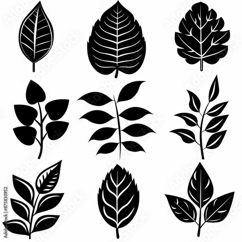 Croton (Codiaeum variegatum) Pot Plant Icon Set, Codiaeum Plant Flat Design, Abstract Croton Symbols