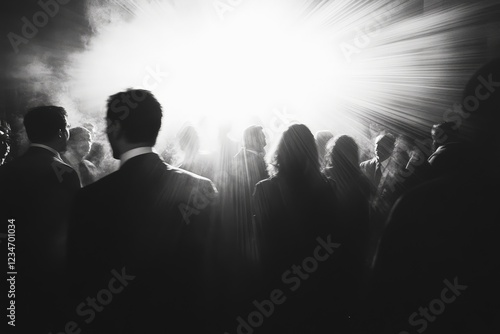 Crowd gathered in a smoky atmosphere enjoying a vibrant nightlife experience in an urban venue