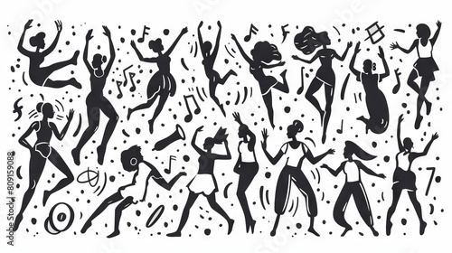 Crowd of happy dancing women. illustration for party, night club, music festival.