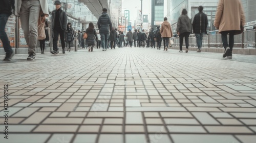 Crowded city street, pedestrians walking, urban scene, daytime, possible use for stock photo