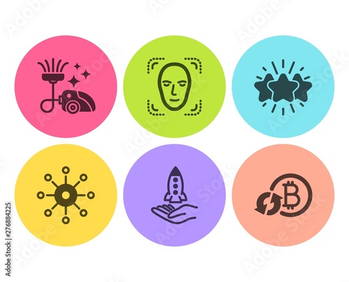 Crowdfunding, Star and Face detection icons simple set. Multichannel, Vacuum cleaner and Refresh bitcoin signs. Start business, Customer feedback. Technology set. Flat crowdfunding icon. Circle button