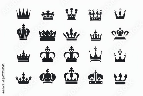 Crown icon, king symbol, princess black sign, queen, royal emblem, royalty, minimal crown logo isolated
