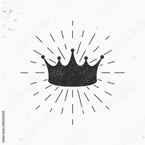 Crown icon with light rays. Vintage Crown map with stamp effect. Vector illustration