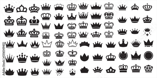 Crown king mega icon set Crown king mega icons. Crown icon set.black crown symbol collection. Crown icon. vector illustration
