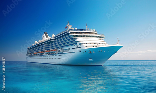 Cruise ship sailing under a clear blue sky, offering luxurious travel and serene maritime adventure