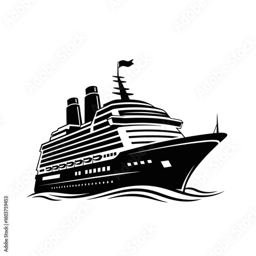 Cruise Ship Sailing Waves Silhouette vector illustration