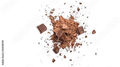 Crumbled Dark Chocolate on White Background for Culinary Use